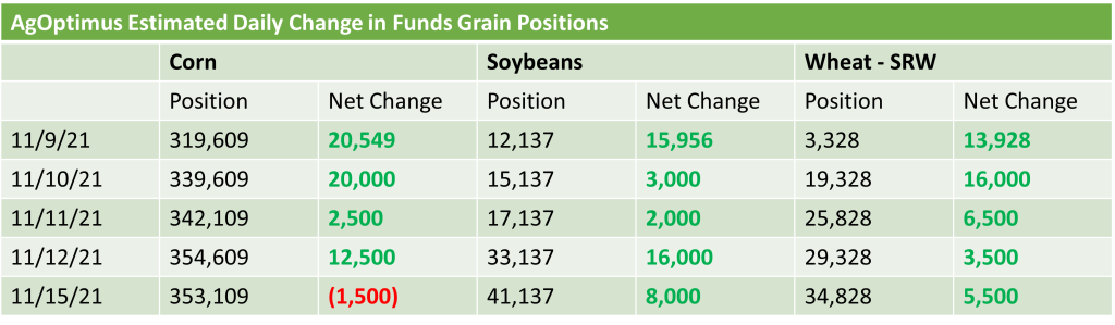 *11/09/21 Position reflects actual CFTC COT Data “ The rest of the data reflects industry estimates of managed money positions