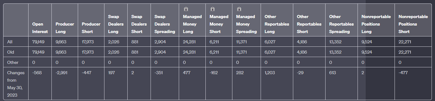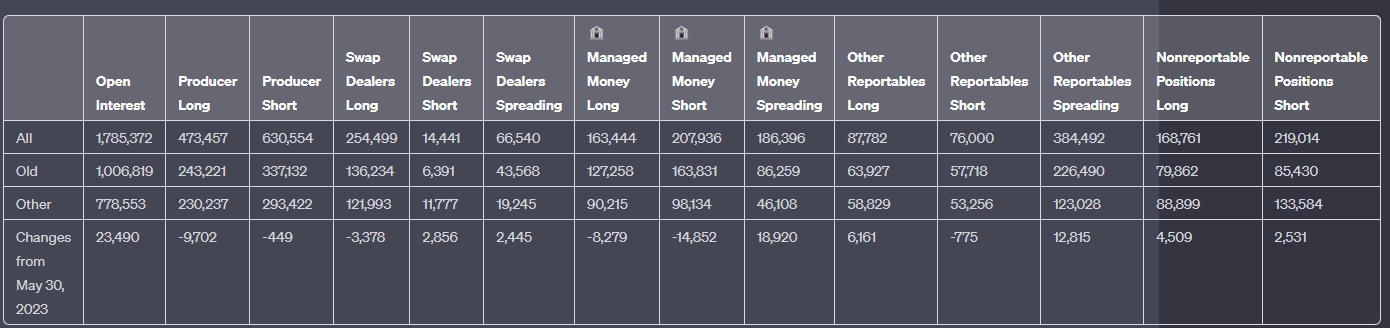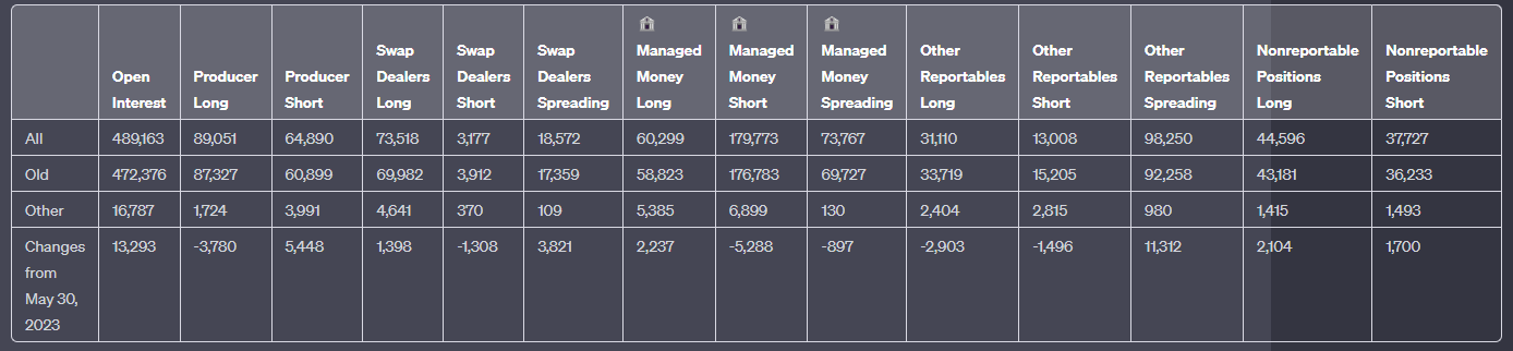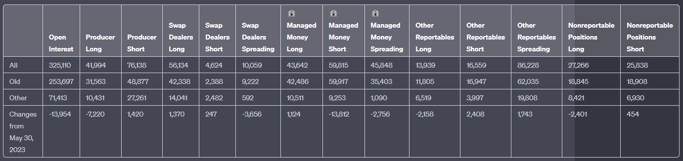 The information contained herein has been primarily derived from the CFTC Commitment of Traders Report, available at the following URL: https://www.cftc.gov/MarketReports/CommitmentsofTraders/index.htm. To ensure the highest level of accuracy and comprehensiveness, we strongly encourage readers to directly refer to the original report.