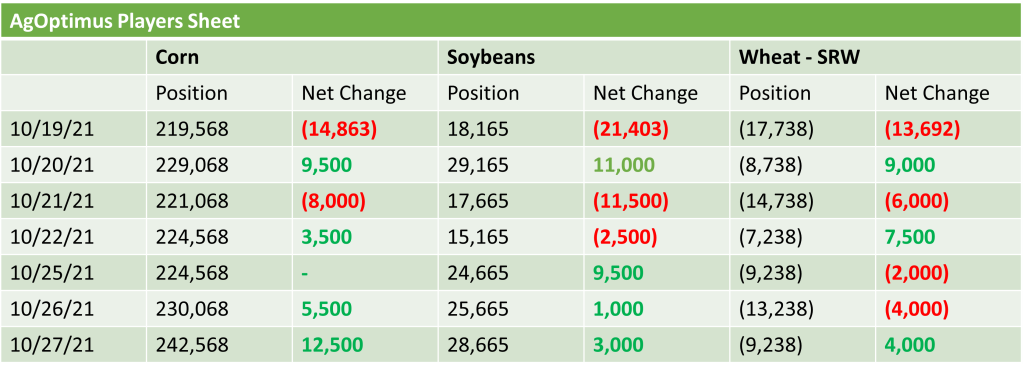 *10/19/21 Position reflects actual CFTC COT Data “ The rest of the data reflects industry estimates of managed money positions
