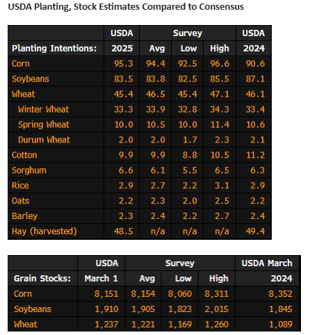- Total wheat acreage: 45.4m, second smallest since 1919!