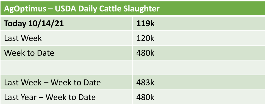 USDA Daily Cattle Slaughter – 10/14/21