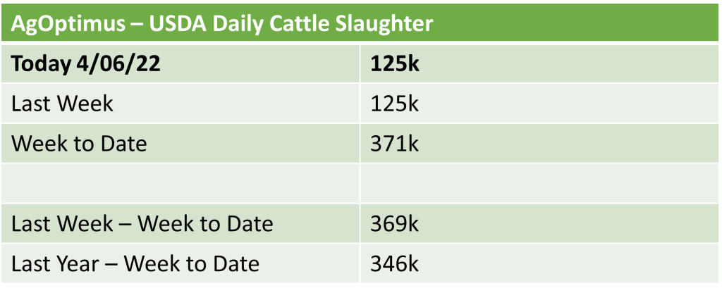 USDA Daily Livestock Slaughter – 4/6/22