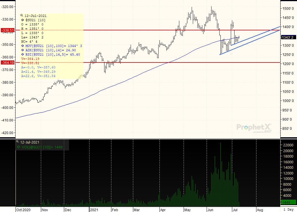 It is report day and traders do not expect to see many changes in the numbers, particularly where yields are concerned. The report will factor in the slightly higher acreage data from June 30, and will be released at 11:00 central time. Look for light position-evening to continue into the data. Traders will be looking at how much USDA will lower Brazil’s Safrinha corn crop, and what they will be doing with demand numbers. As a reminder, Brazil’s Conab was at 93.4 mmt, with the USDA at 98.5 mmt in June. Most private estimates are more in the mindset that the freeze nipped potential back to the 85-90 mmt range for the Safrinha crop.