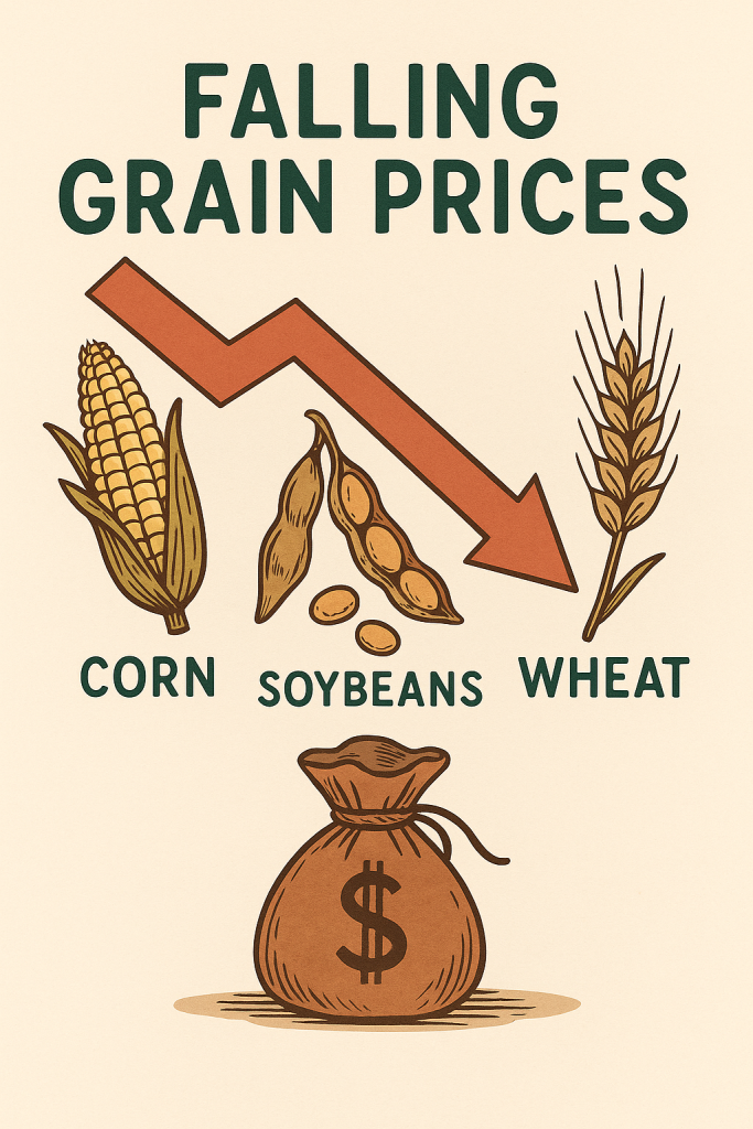 Grain prices fall when supply outpaces demand, creating market conditions in which corn and soybean prices fall below average production costs, squeezing farm profitability and forcing farmers to sell crops at reduced margins. This comprehensive analysis examines the complex factors driving declining market values for corn, soybeans, and wheat, which directly impacts farm operations and business decisions.